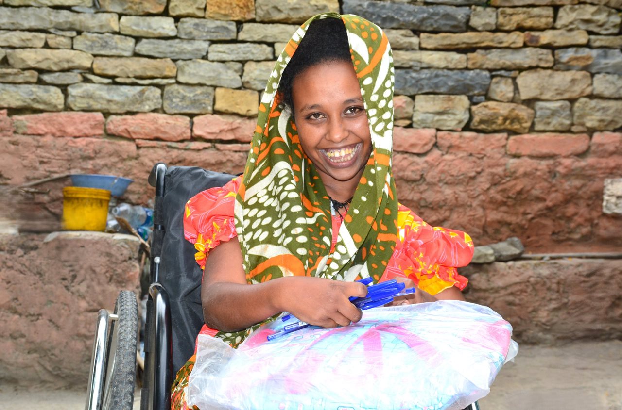 Even during this challenging period, Nazrawit’s strength never faded. Through a partnership established by the project with SEN Ethiopia, an organization supporting children with special educational needs in Tigray she received a modern wheelchair, along with essential scholastic materials such as exercise books, a school bag, and other supplies. This timely support restored her mobility, renewed her confidence and gave her back her dream of returning to school once more.