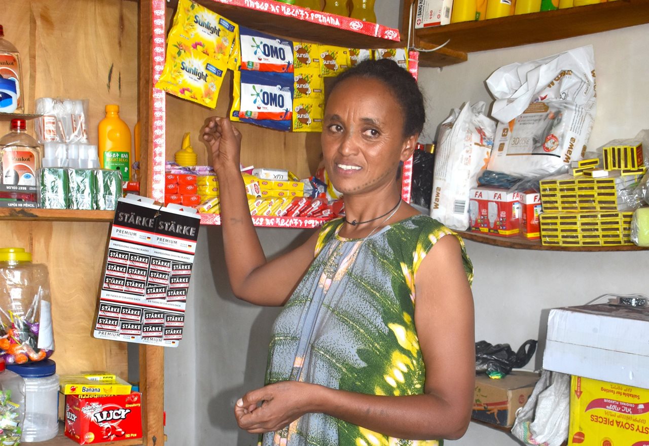 Through the project, Tsege received business skills training, and a start-up capital to launch her own small shop. Meanwhile, her son Samson received the support he needed to return to school with all the necessary learning materials.